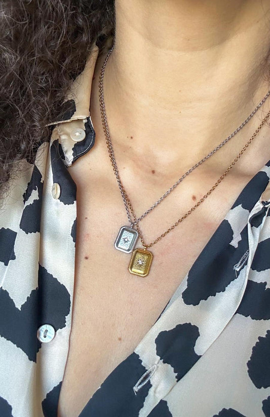 Diamond Star Plaque Dainty Necklace