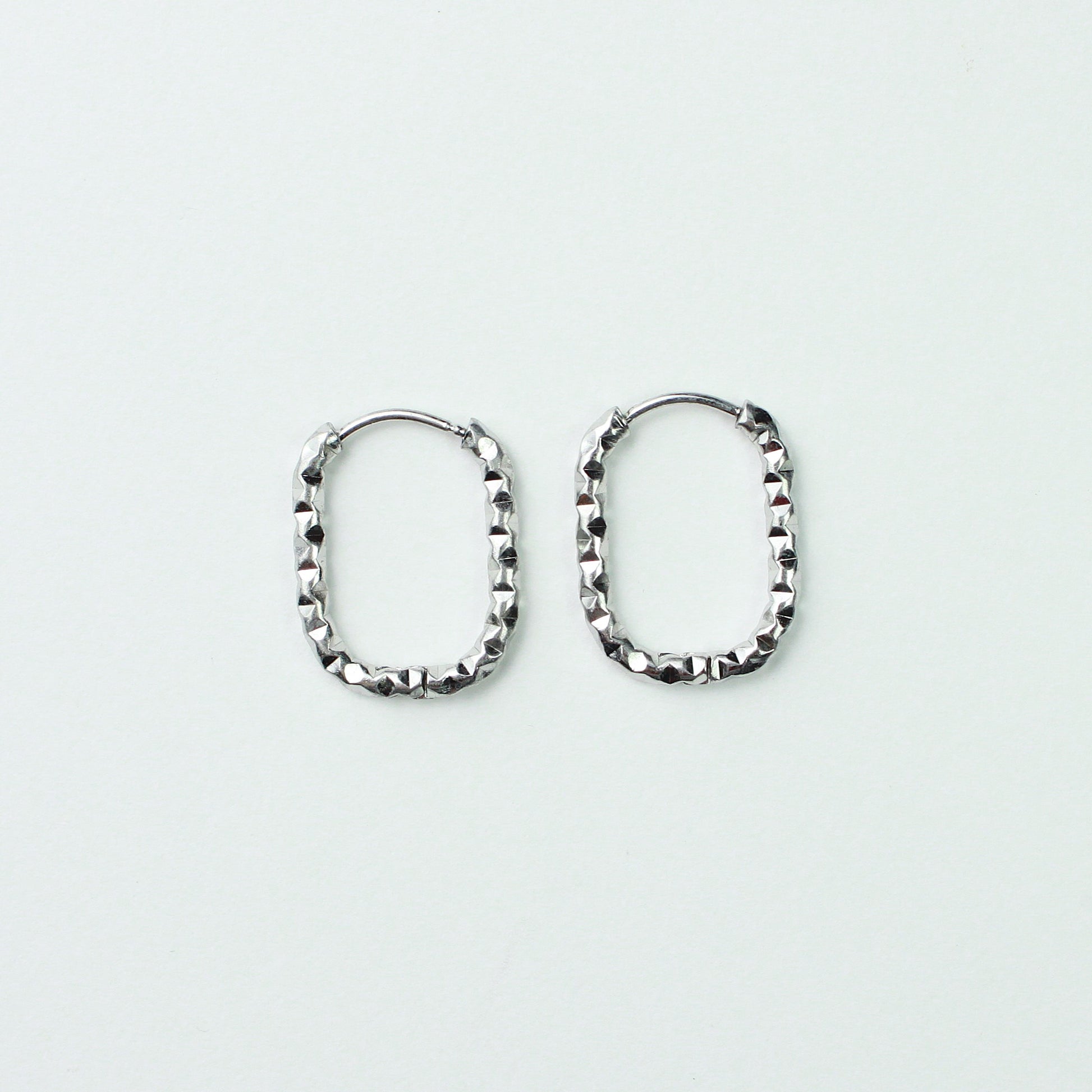 These Dented Rectangular Earrings come in either gold or silver stainless steel, with a unique rectangular loop shape. Easily add charms from our collection for a customizable and versatile look. The more charms you add, the more you can multiply your style.