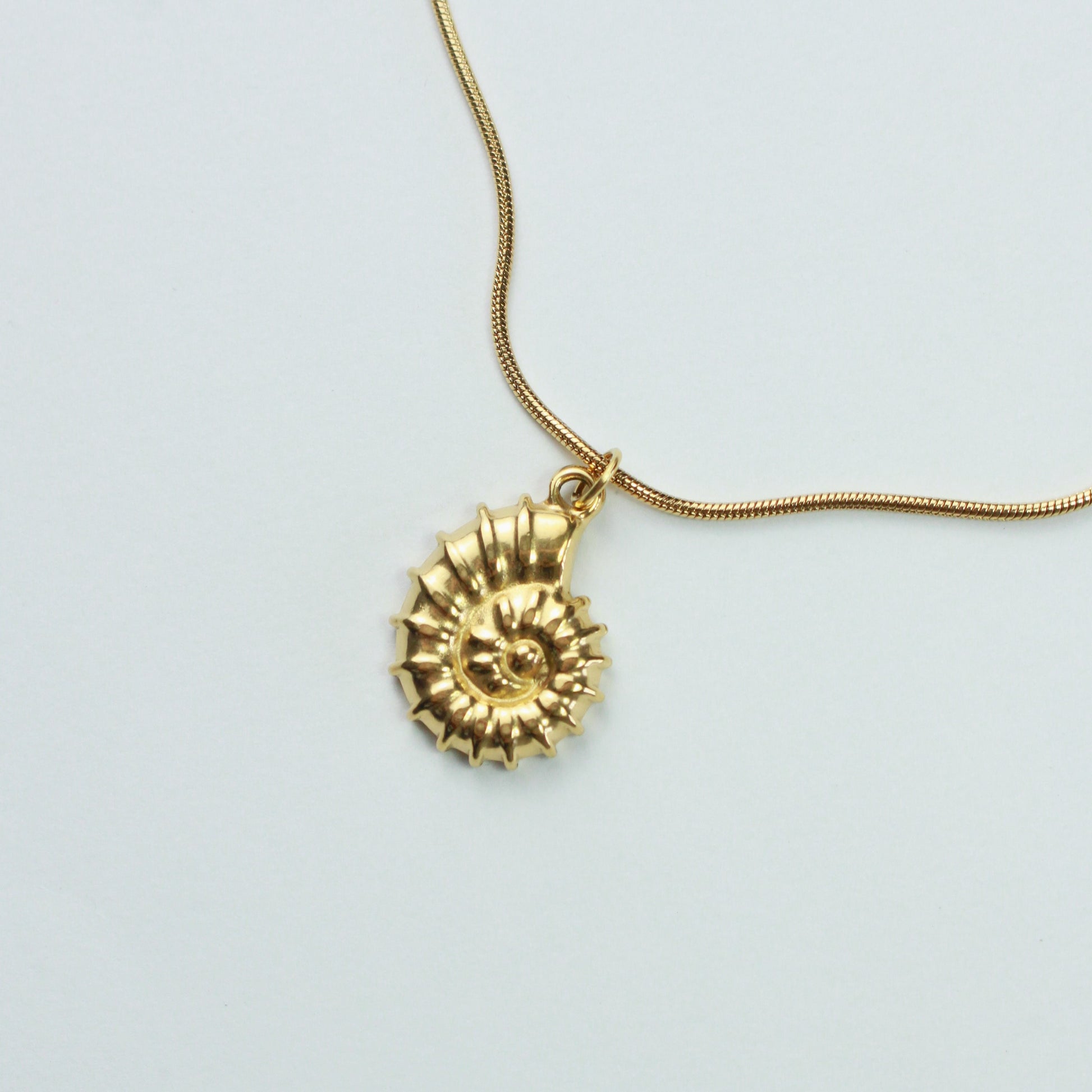 This beautiful Spiral Shell Pendant Necklace is a must-have accessory for any ocean lover. Made with a delicate gold spiral shell charm, this necklace is not only stylish but also waterproof, making it perfect for any beach day or water adventure. Add an elegant touch to your outfit and show your love for the ocean with this stunning necklace.