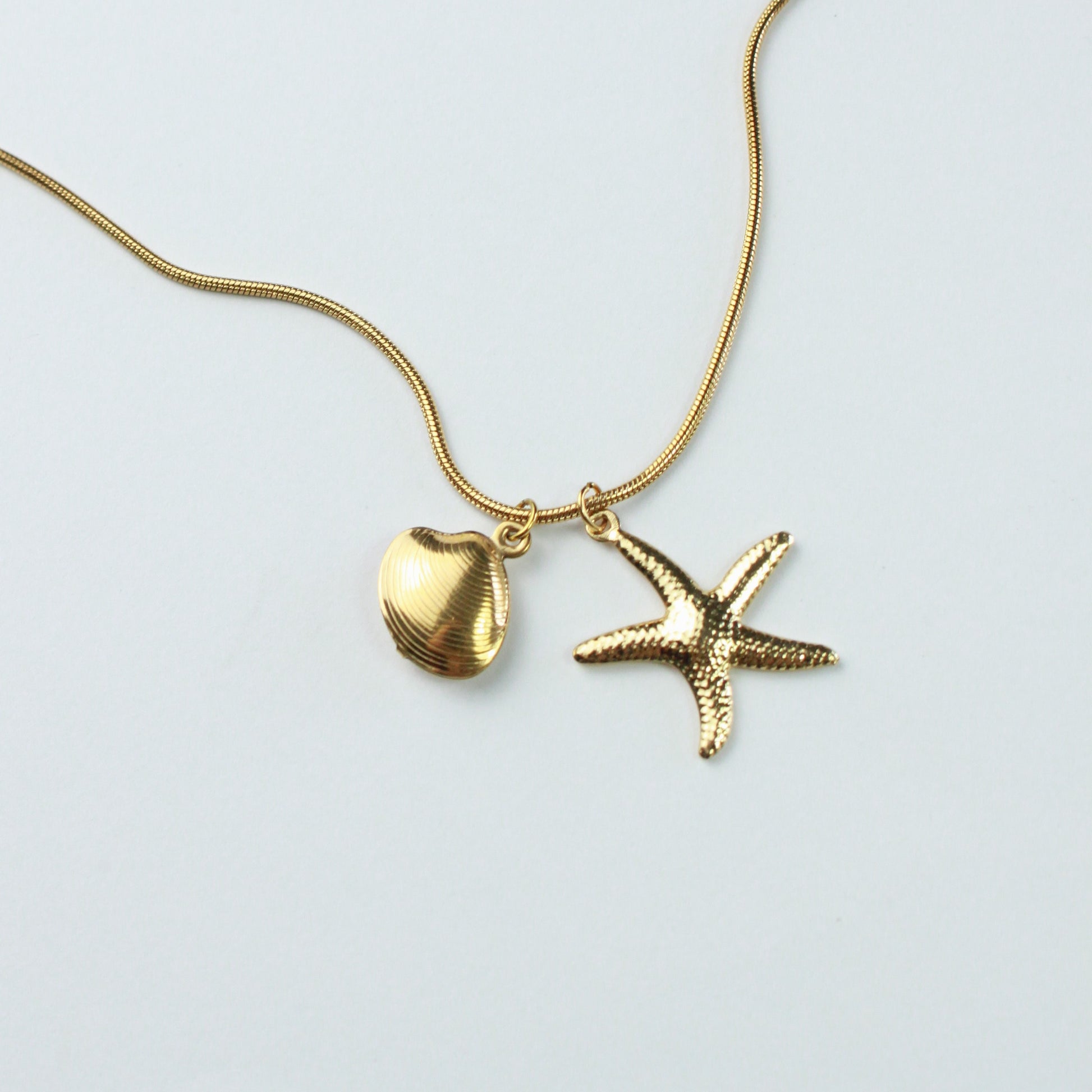 Adicione um pedaço do oceano ao seu look com o nosso Colar Concha e Estrela do Mar. Este colar é tanto estiloso quanto à prova d'água, perfeito para um dia de praia ou piscina! (Nenhuma sereia foi ferida na confecção deste colar.)
